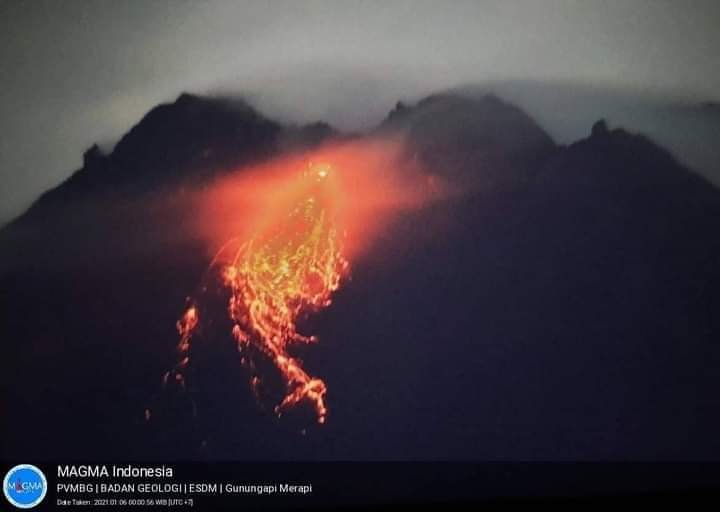 YOGYAKARTA – Gunung Merapi sejak hari Kamis – Jum’at (14-15/1/21) pukul 00.00 – 07.00, tidak cuma keluarkan aktivitas vulkanik berupa guguran lava pijar, tapi juga guguran awan panas.